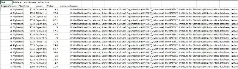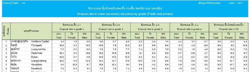 ດຽວເຮົາຈະມາຍົກຕົວຢ່າງ ຕາຕະລາງຈາກສະຖິຕິສຶກສາ 2016-2017 ຖ້າເບິ່ງໂດຍລວມແລ້ວຕາຕະລາງນີ້ຖືວ່າ ເບິ່ງງ່າຍ ມີການຈັດໝວດໝູ່ ແລະ ເປັນລະບຽບດີ. ແຕ່ວ່າຕາຕະລາງແບບນີ້ບໍ່ເໝາະແກ່ການນຳເອົາໄປວິເຄາະປານໃດ ຖ້າເຮົາເອົາຕະຕະລາງນີ້ໃນ sheet ກໍລະນີເຮົາຢາກ ຈັດລຽງຂໍ້ມູນກໍຢາກຍາກ ເຊັ່ນ: ຖ້າເຮົາຢາກຮູ້ວ່າ ໃນນະຄອນຫຼວງວຽງຈັນ ນັກຮຽນຊັ້ນໃດມີເປີເຊັນການອອກໂຮງຮຽນສູງກ່ອນໝູ່. ໃນກໍລະນີນີ້ແມ່ນເຮົາຈະ filter ຂໍ້ມູນບໍ່ໄດ້ເລີຍໃນຮູບແບບດັ່ງກ່າວ.
