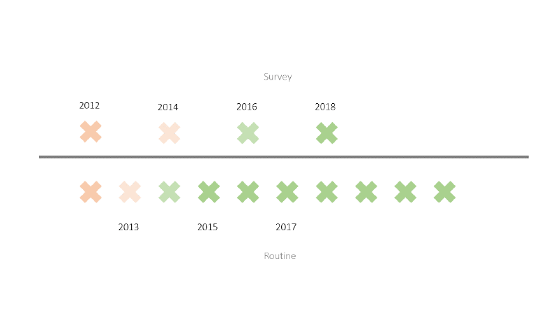 ເມື່ອເຮົາມີຖານຂໍ້ມູນ 2 ປະເພດ routine ແລະ survey ທີ່ມີຕົວປ່ຽນຄືກັນ ເຮົາຈະໃຊ້ໂຕໃດດີ?